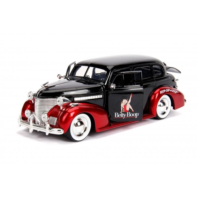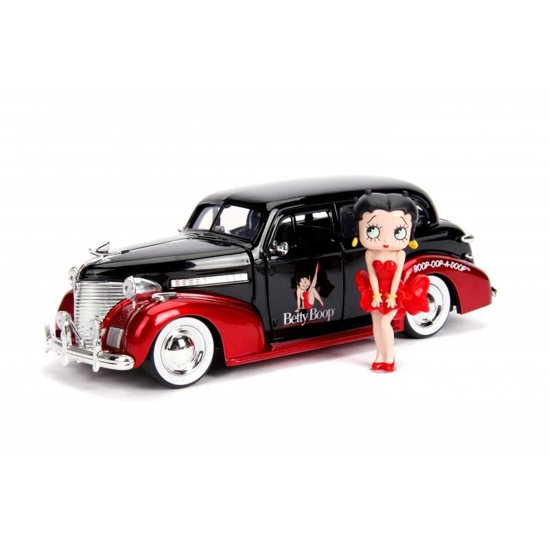 Jada combine the styling of Betty Boop with a 1930s car to bring you this neat Black and Red Betty Boop themed 1939 Chevy Master Deluxe, featuring opening doors and boot as well as a Diecast Betty Boop figure!