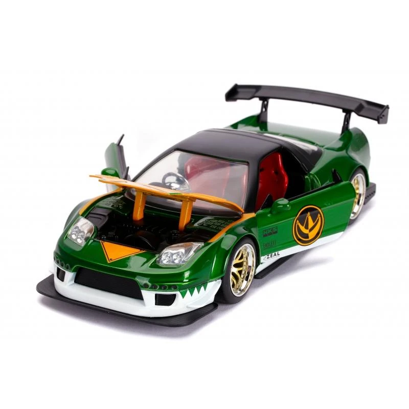This 2009 Honda NSX Type R takes its styling cues directly from The Power Rangers! This vehicle features a die-cast body, rubber tires, opening doors, hood and trunk, along with a detailed interior. Also included is a 100% die-cast Green Power Ranger figure that is dynamically posed standing at 1.65”. This beautifully sculpted collectible is sure to be a standout in any collection.
